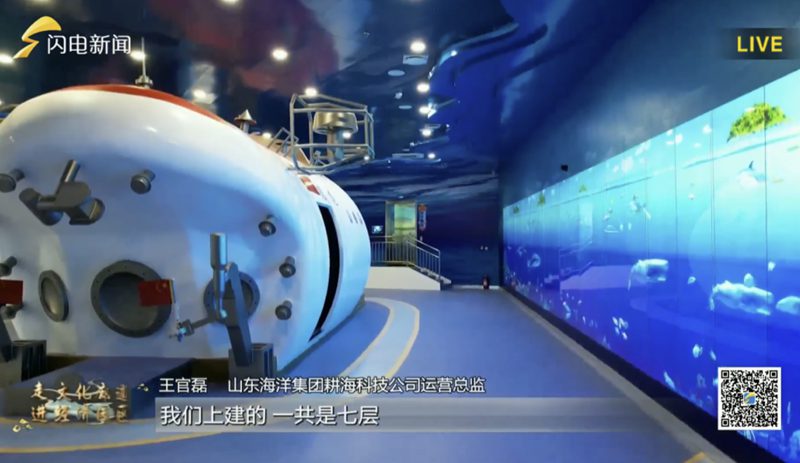 在海(hai)洋漁(yu)業科(ke)普展廳內,游客(ke)不僅(jin)可以通(tong)過(guo)全(quan)景影(ying)片(pian),一鏡到底(di),感受(shou)石器(qi)時代(dai)、春(chun)秋、唐宋、元明清、近代(dai)、現(xian)代(dai)等六個(ge)時期的(de)耕(geng)海(hai)牧漁(yu)生(sheng)活(huo)場景,還可以通(tong)過(guo)VR、AR、裸眼3D、5D等技術設備,讓游客(ke)身(shen)臨其境(jing)“乘(cheng)坐”深(shen)海(hai)電梯(ti),下潛(qian)至海(hai)底(di)11034米;也可以“乘(cheng)坐”中國首(shou)臺自主設計(ji)的(de)、最大(da)下潛(qian)記錄7062?的(de)“蛟(jiao)龍號”載?深(shen)潛(qian)器(qi),探索海(hai)底(di)世界(jie)的(de)神秘和海(hai)洋生(sheng)物的(de)豐富多彩。整(zheng)個(ge)體驗兼顧趣味性與(yu)科(ke)學性。